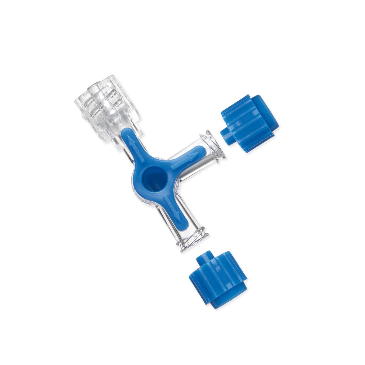 Rubinetto a 3 vie per raccordo di linee infusionali per la somministrazione di farmaci e soluzioni (accessorio per set infusionale).